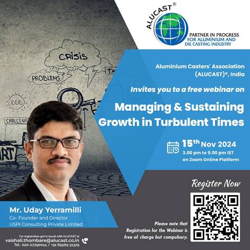 Our Co-Founder & Director, Uday Sankar Yerramilli has been invited to address the Alucast members on the topic “Managing & Sustaining Growth in Turbulent Times”.